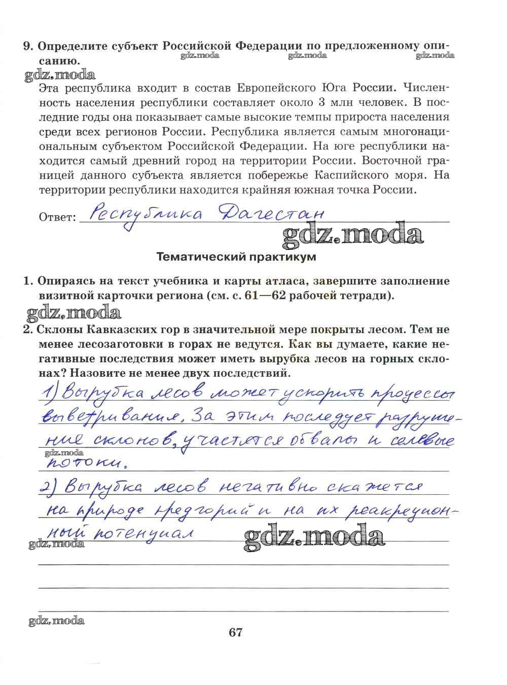 ГДЗ решение к заданию № 67 География 9 класс Рабочая тетрадь Домогацких Е.М. (к уч. Домогацких) Русское слово 2018 ФГОС бесплатно на гдз.мода!