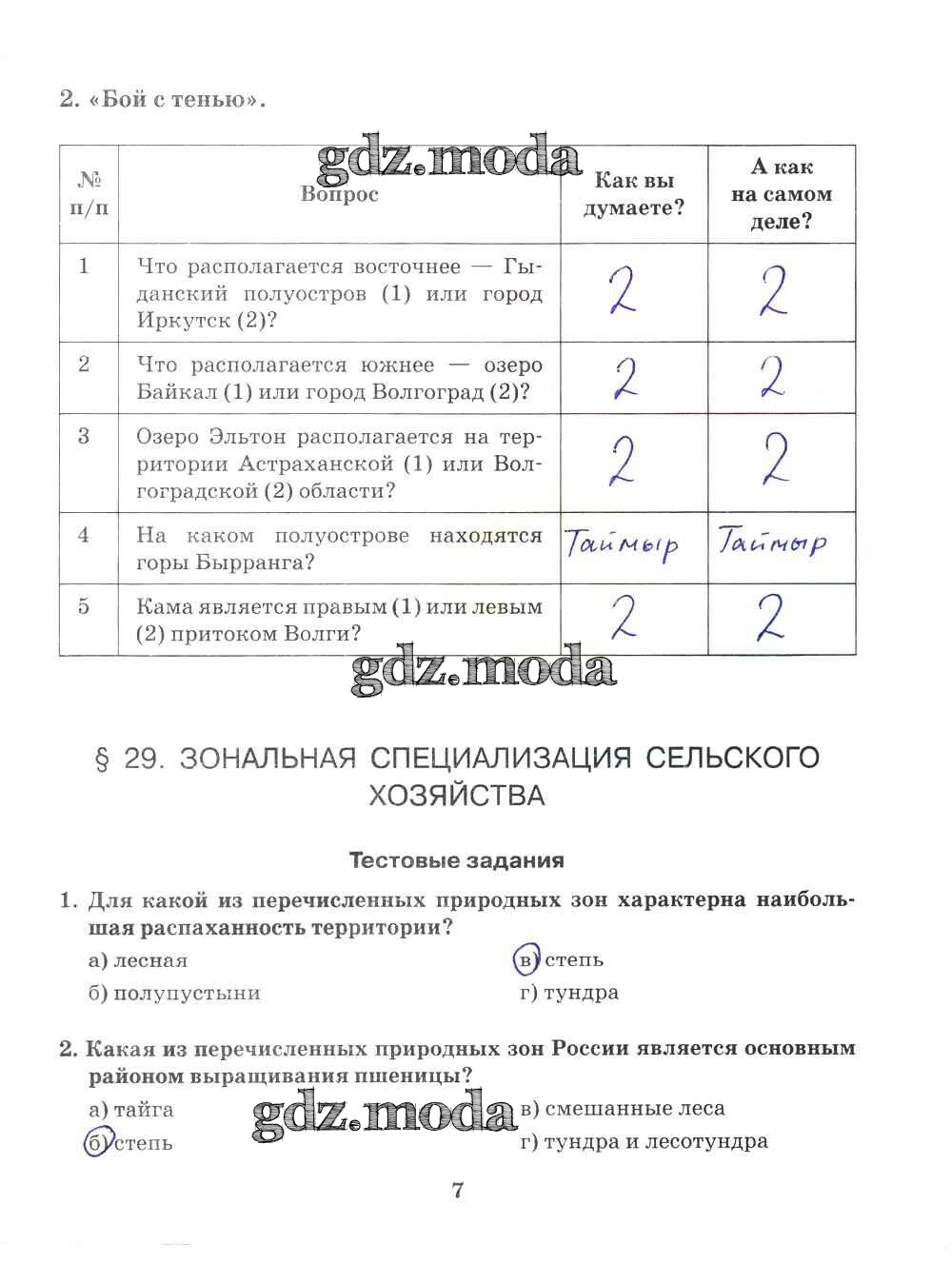 ГДЗ решение к заданию № 7 География 9 класс Рабочая тетрадь Домогацких Е.М. (к уч. Домогацких) Русское слово 2018 ФГОС бесплатно на гдз.мода!