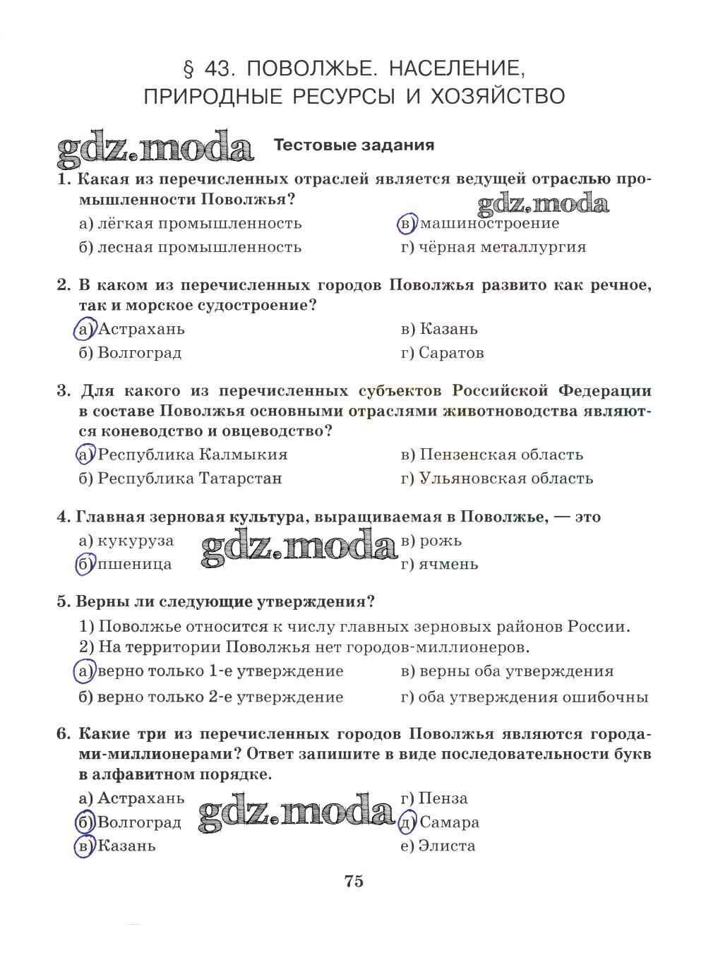 ГДЗ решение к заданию № 75 География 9 класс Рабочая тетрадь Домогацких Е.М. (к уч. Домогацких) Русское слово 2018 ФГОС бесплатно на гдз.мода!