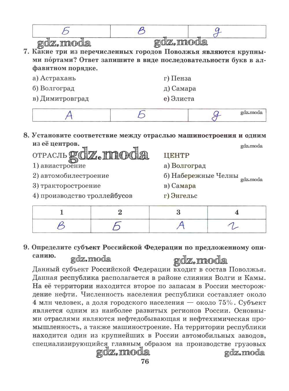 ГДЗ решение к заданию № 76 География 9 класс Рабочая тетрадь Домогацких Е.М. (к уч. Домогацких) Русское слово 2018 ФГОС бесплатно на гдз.мода!