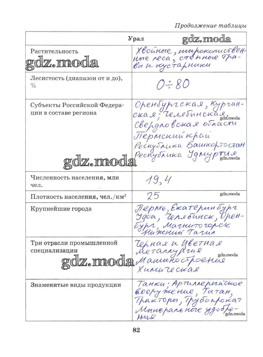 ГДЗ решение к заданию № 82 География 9 класс Рабочая тетрадь Домогацких Е.М. (к уч. Домогацких) Русское слово 2018 ФГОС бесплатно на гдз.мода!