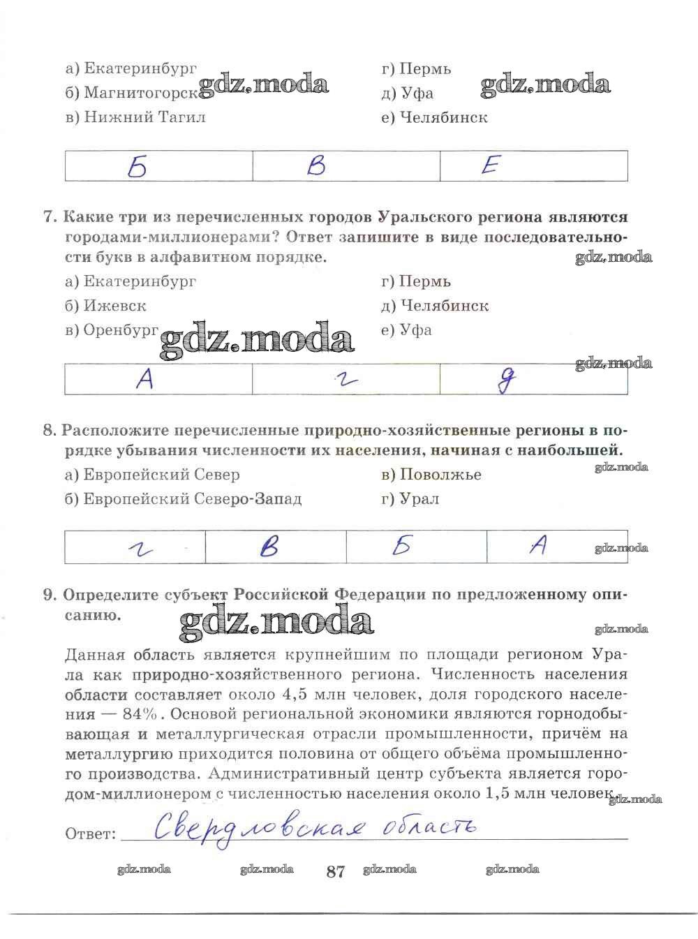 ГДЗ решение к заданию № 87 География 9 класс Рабочая тетрадь Домогацких Е.М. (к уч. Домогацких) Русское слово 2018 ФГОС бесплатно на гдз.мода!