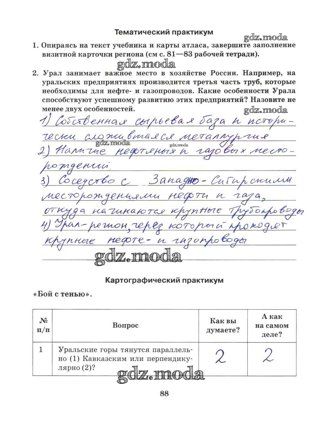ГДЗ решение к заданию № 88 География 9 класс Рабочая тетрадь Домогацких Е.М. (к уч. Домогацких) Русское слово 2018 ФГОС бесплатно на гдз.мода!