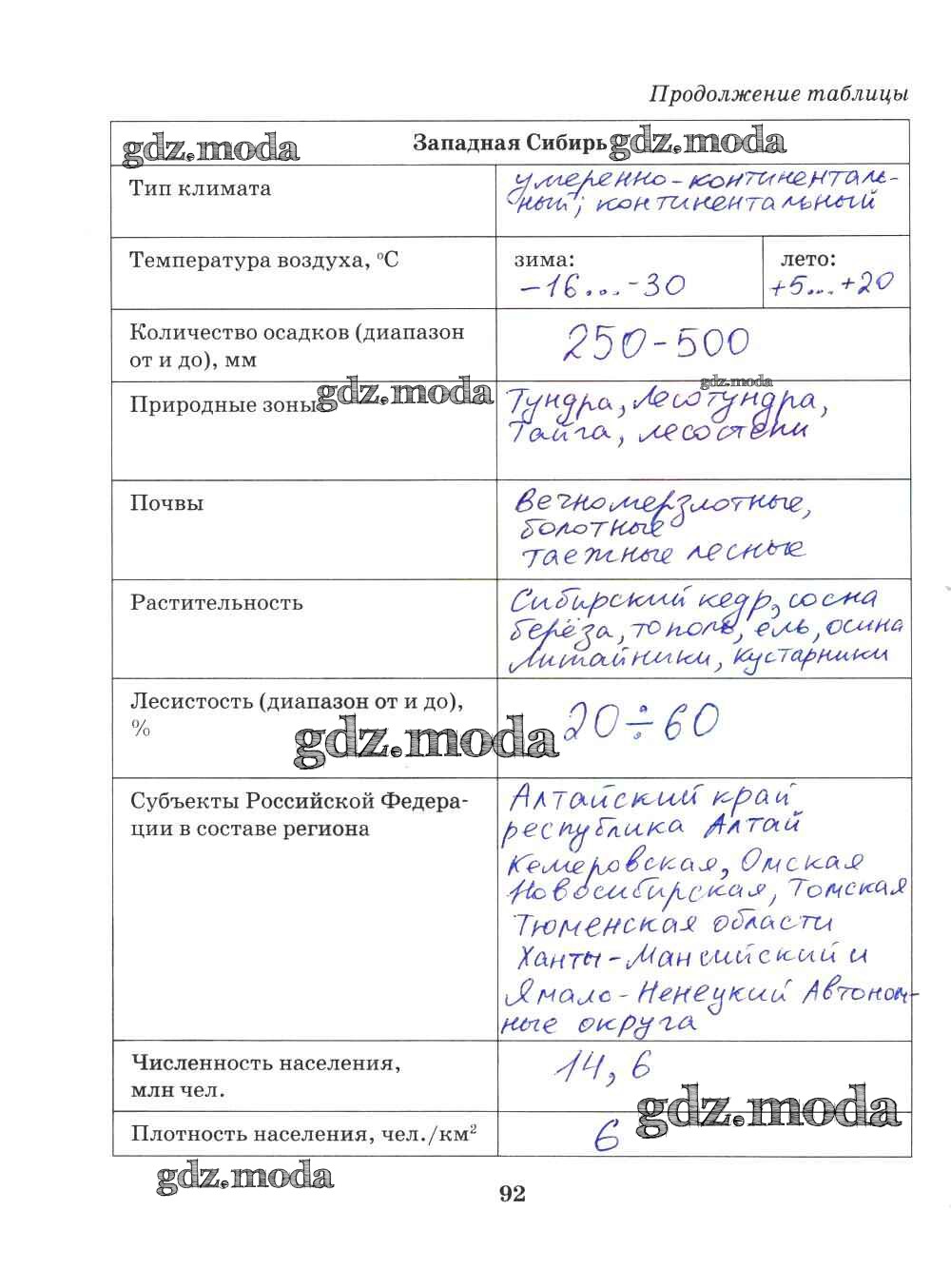ГДЗ решение к заданию № 92 География 9 класс Рабочая тетрадь Домогацких Е.М. (к уч. Домогацких) Русское слово 2018 ФГОС бесплатно на гдз.мода!