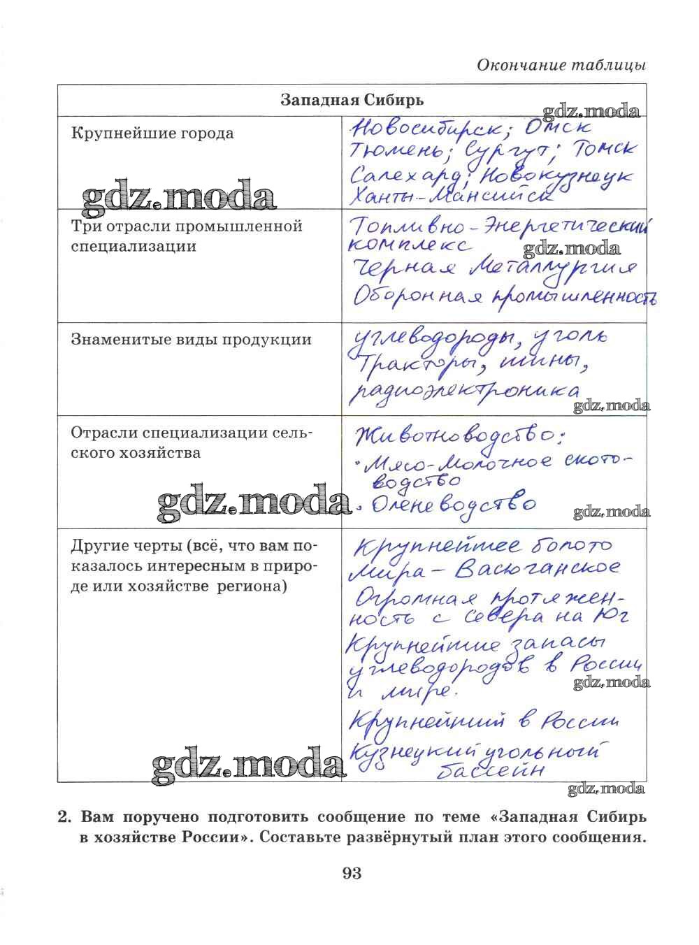 ГДЗ решение к заданию № 93 География 9 класс Рабочая тетрадь Домогацких Е.М. (к уч. Домогацких) Русское слово 2018 ФГОС бесплатно на гдз.мода!