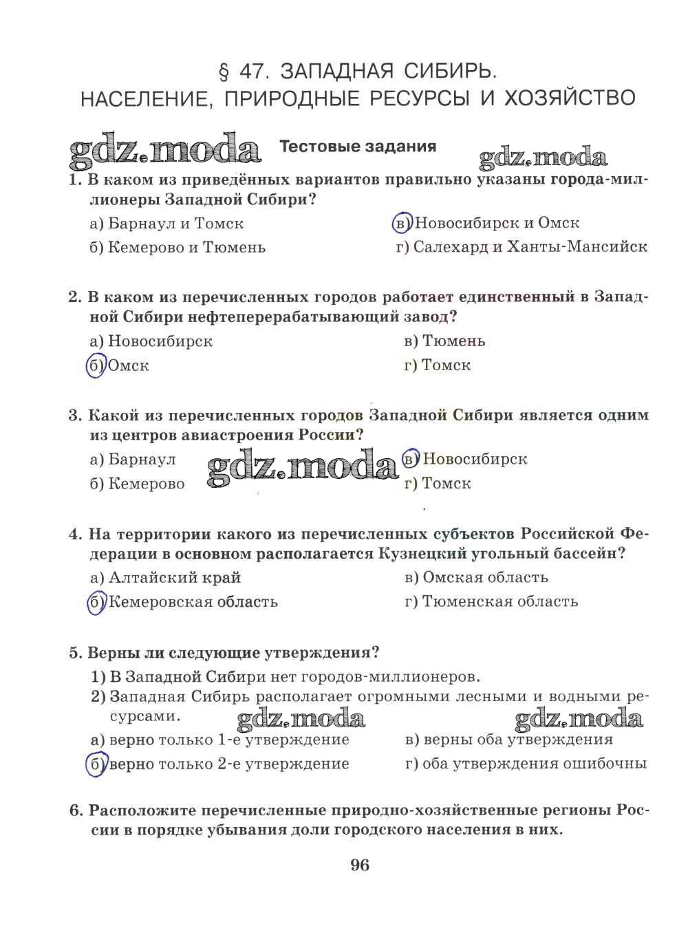 ГДЗ решение к заданию № 96 География 9 класс Рабочая тетрадь Домогацких Е.М. (к уч. Домогацких) Русское слово 2018 ФГОС бесплатно на гдз.мода!