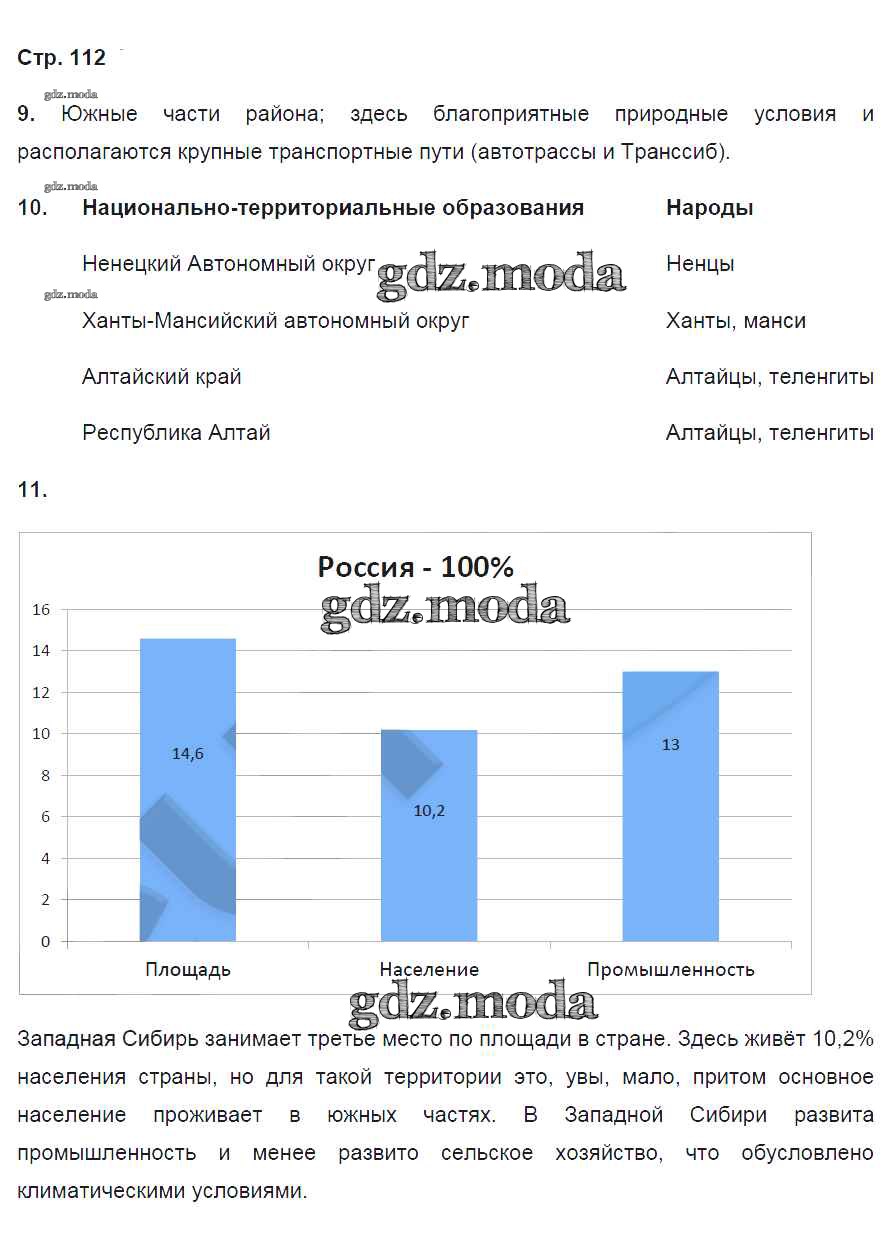 ГДЗ решение к заданию № 112 География России. Население и хозяйство 9 класс рабочая тетрадь Дронов В.П. (к уч.Дронова) Дрофа 2020 ФГОС бесплатно на гдз.мода!