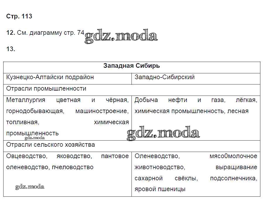 ГДЗ решение к заданию № 113 География России. Население и хозяйство 9 класс рабочая тетрадь Дронов В.П. (к уч.Дронова) Дрофа 2020 ФГОС бесплатно на гдз.мода!