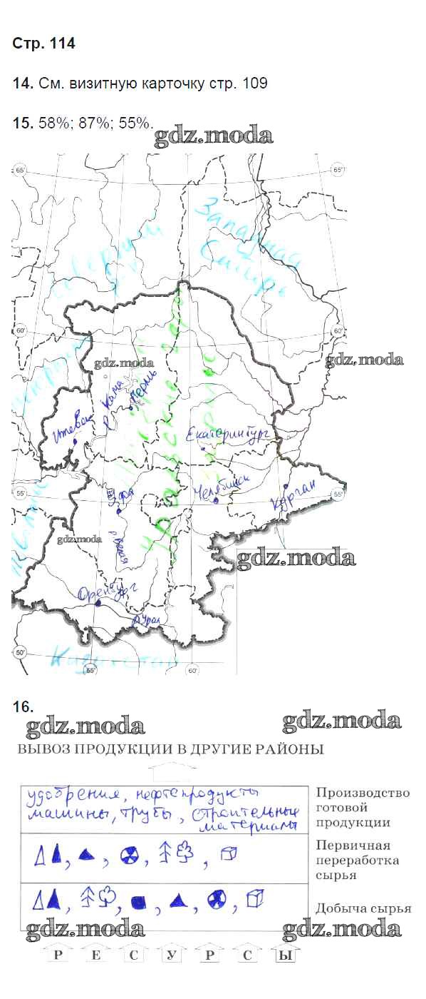 ГДЗ решение к заданию № 114 География России. Население и хозяйство 9 класс рабочая тетрадь Дронов В.П. (к уч.Дронова) Дрофа 2020 ФГОС бесплатно на гдз.мода!