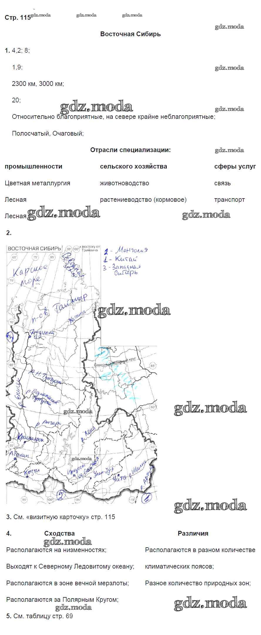 ГДЗ решение к заданию № 115 География России. Население и хозяйство 9 класс рабочая тетрадь Дронов В.П. (к уч.Дронова) Дрофа 2020 ФГОС бесплатно на гдз.мода!