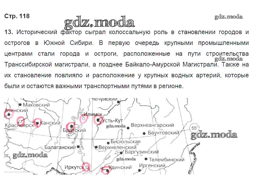 ГДЗ решение к заданию № 118 География России. Население и хозяйство 9 класс рабочая тетрадь Дронов В.П. (к уч.Дронова) Дрофа 2020 ФГОС бесплатно на гдз.мода!