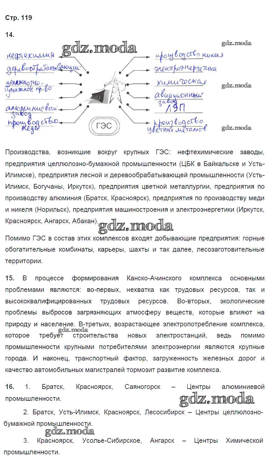 ГДЗ решение к заданию № 119 География России. Население и хозяйство 9 класс рабочая тетрадь Дронов В.П. (к уч.Дронова) Дрофа 2020 ФГОС бесплатно на гдз.мода!