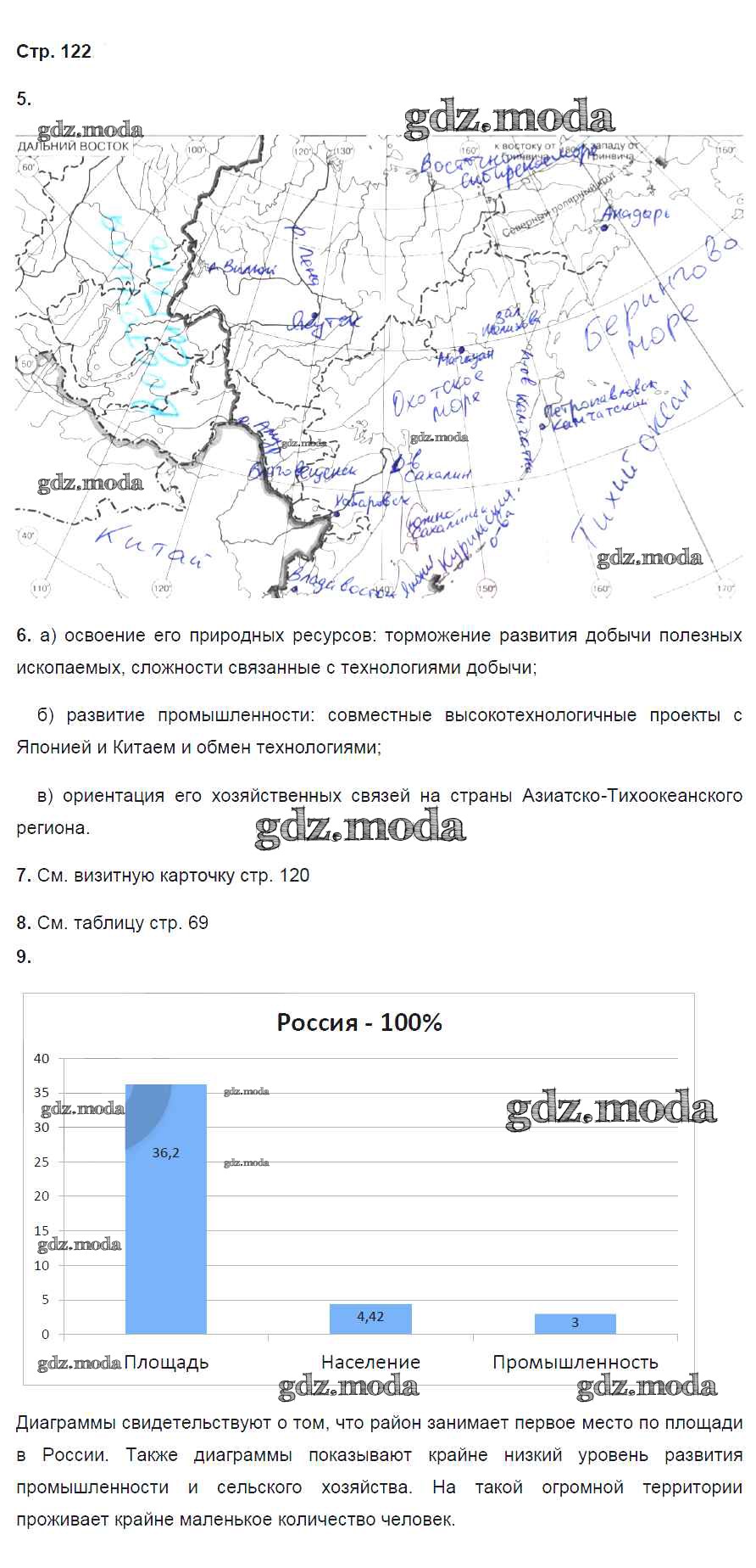 ГДЗ решение к заданию № 122 География России. Население и хозяйство 9 класс рабочая тетрадь Дронов В.П. (к уч.Дронова) Дрофа 2020 ФГОС бесплатно на гдз.мода!