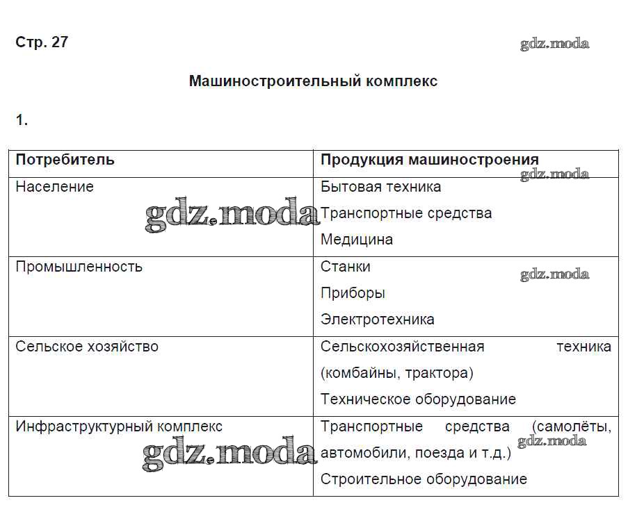 ГДЗ решение к заданию № 27 География России. Население и хозяйство 9 класс рабочая тетрадь Дронов В.П. (к уч.Дронова) Дрофа 2020 ФГОС бесплатно на гдз.мода!