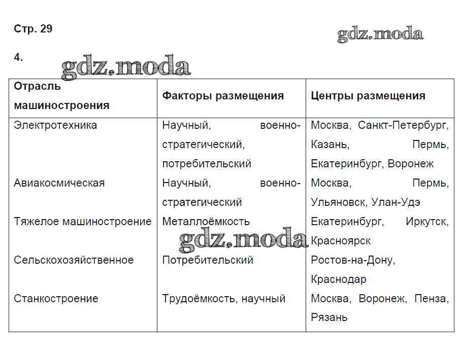 ГДЗ решение к заданию № 29 География России. Население и хозяйство 9 класс рабочая тетрадь Дронов В.П. (к уч.Дронова) Дрофа 2020 ФГОС бесплатно на гдз.мода!