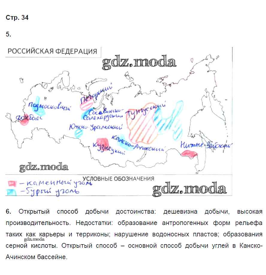 ГДЗ решение к заданию № 34 География России. Население и хозяйство 9 класс рабочая тетрадь Дронов В.П. (к уч.Дронова) Дрофа 2020 ФГОС бесплатно на гдз.мода!