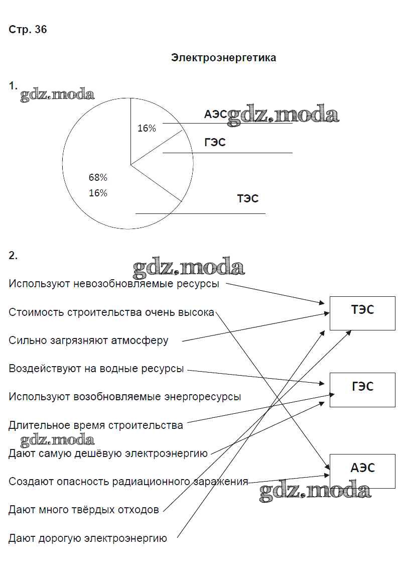 ГДЗ решение к заданию № 36 География России. Население и хозяйство 9 класс рабочая тетрадь Дронов В.П. (к уч.Дронова) Дрофа 2020 ФГОС бесплатно на гдз.мода!