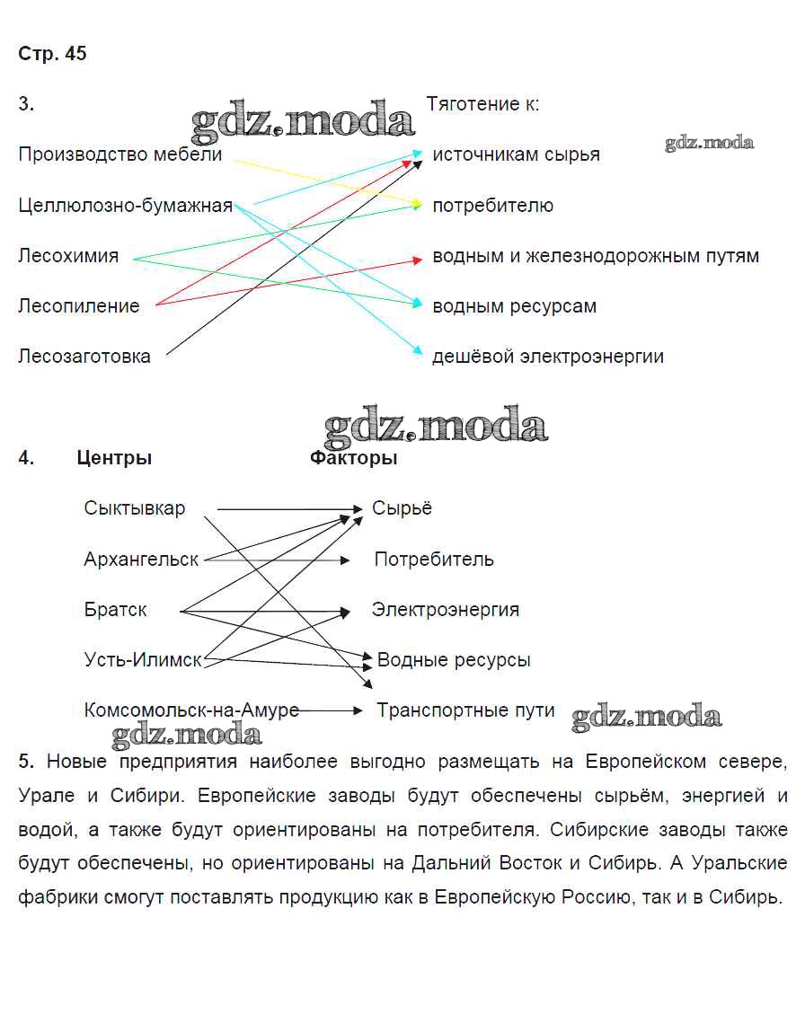 ГДЗ решение к заданию № 45 География России. Население и хозяйство 9 класс рабочая тетрадь Дронов В.П. (к уч.Дронова) Дрофа 2020 ФГОС бесплатно на гдз.мода!