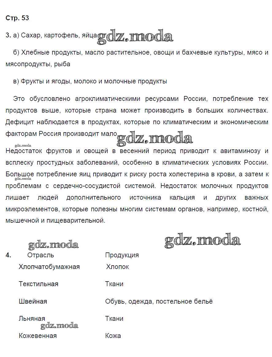ГДЗ решение к заданию № 53 География России. Население и хозяйство 9 класс рабочая тетрадь Дронов В.П. (к уч.Дронова) Дрофа 2020 ФГОС бесплатно на гдз.мода!