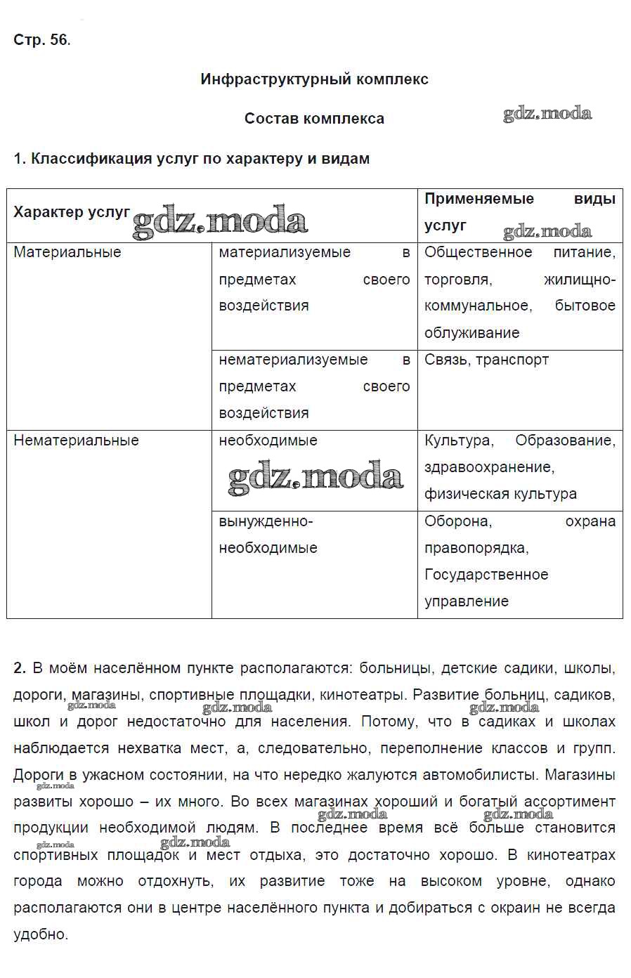 ГДЗ решение к заданию № 56 География России. Население и хозяйство 9 класс рабочая тетрадь Дронов В.П. (к уч.Дронова) Дрофа 2020 ФГОС бесплатно на гдз.мода!