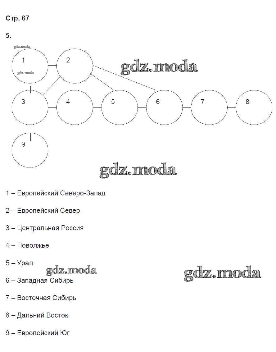 ГДЗ решение к заданию № 67 География России. Население и хозяйство 9 класс рабочая тетрадь Дронов В.П. (к уч.Дронова) Дрофа 2020 ФГОС бесплатно на гдз.мода!