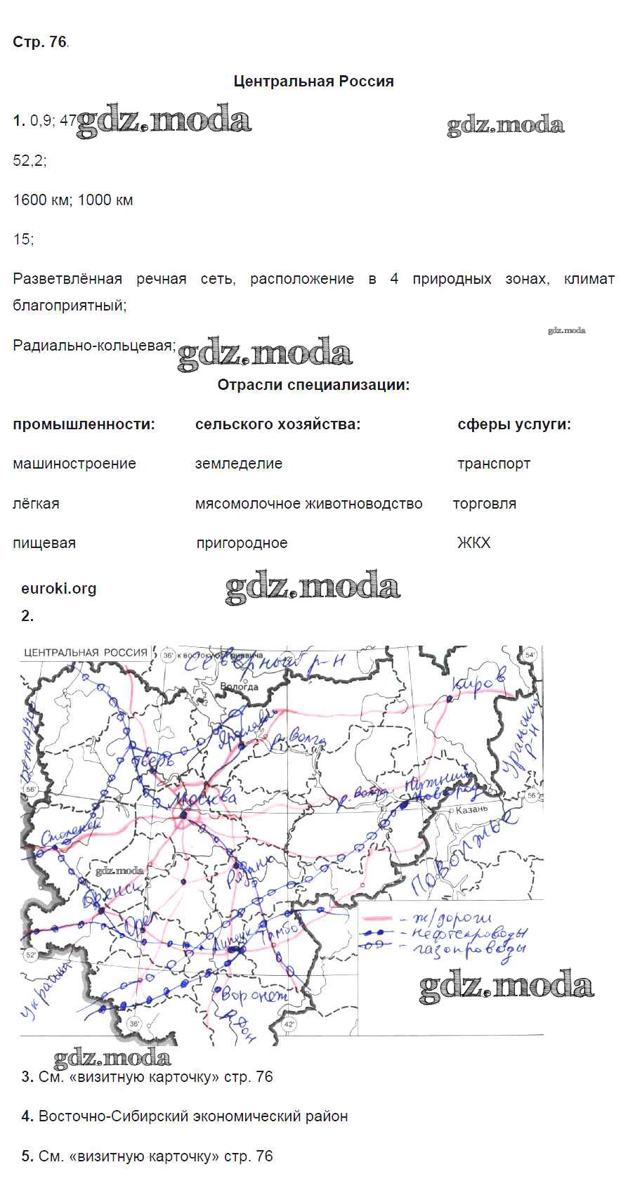 ГДЗ решение к заданию № 76 География России. Население и хозяйство 9 класс рабочая тетрадь Дронов В.П. (к уч.Дронова) Дрофа 2020 ФГОС бесплатно на гдз.мода!