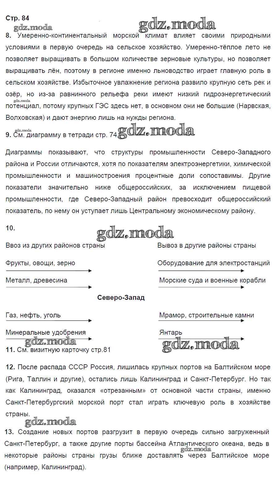 ГДЗ решение к заданию № 84 География России. Население и хозяйство 9 класс рабочая тетрадь Дронов В.П. (к уч.Дронова) Дрофа 2020 ФГОС бесплатно на гдз.мода!
