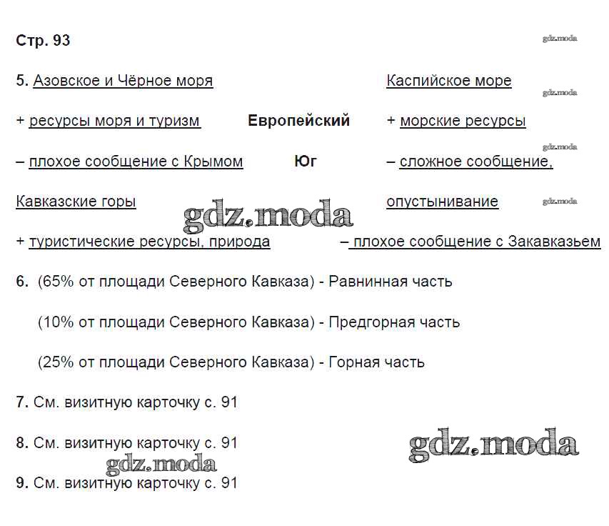 ГДЗ решение к заданию № 93 География России. Население и хозяйство 9 класс рабочая тетрадь Дронов В.П. (к уч.Дронова) Дрофа 2020 ФГОС бесплатно на гдз.мода!