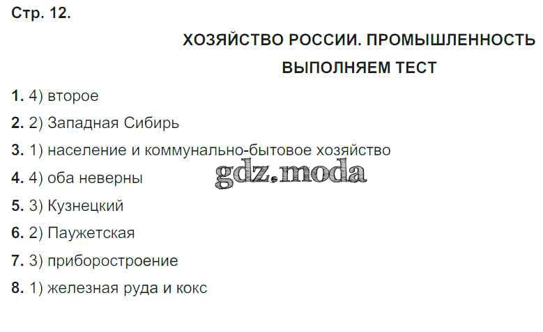 ГДЗ решение к заданию № стр.12 География России 9 класс тетрадь-тренажер Ходова Е.С. Просвещение 2016 ФГОС бесплатно на гдз.мода!