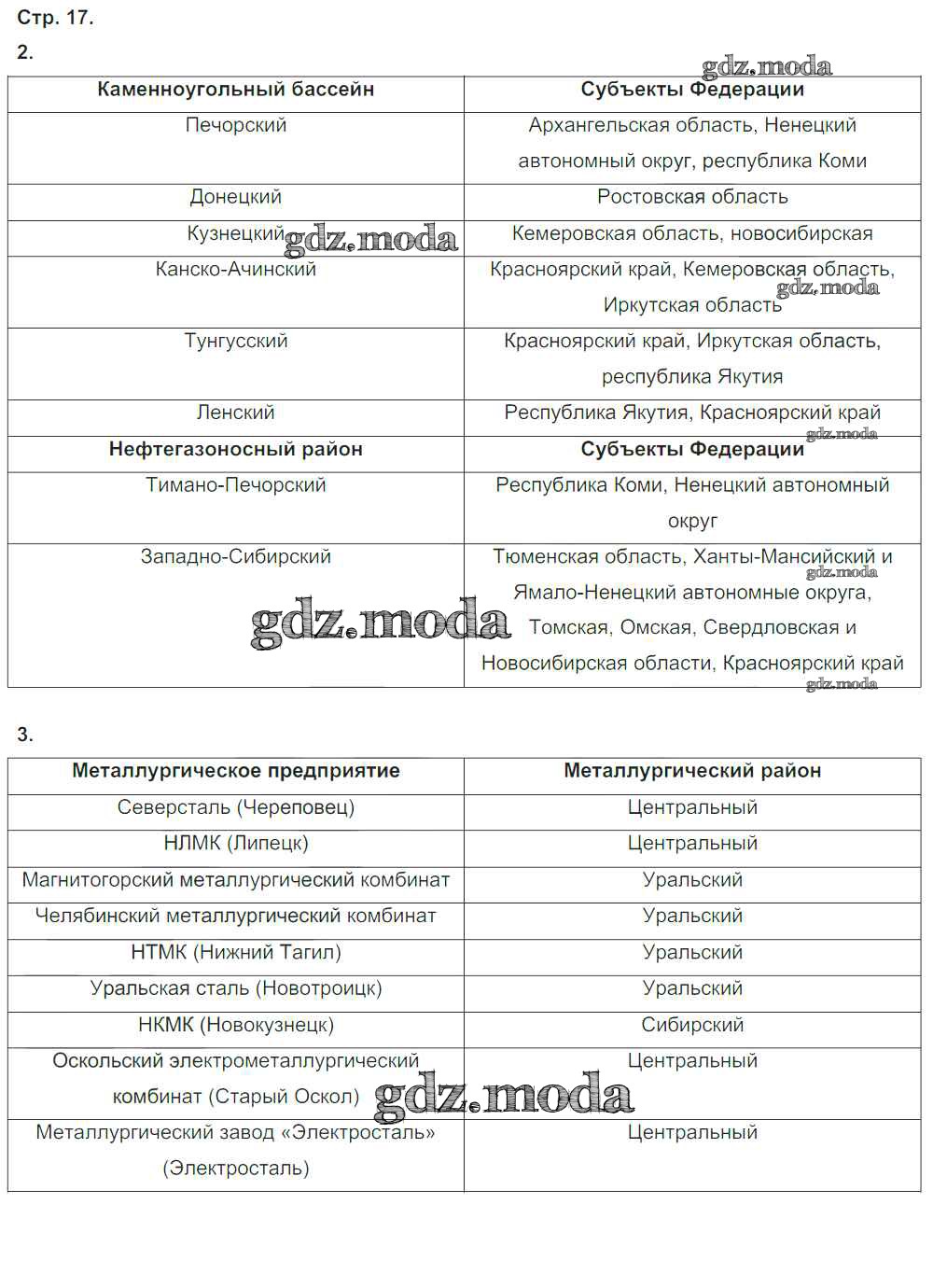 ГДЗ решение к заданию № стр.17 География России 9 класс тетрадь-тренажер Ходова Е.С. Просвещение 2016 ФГОС бесплатно на гдз.мода!