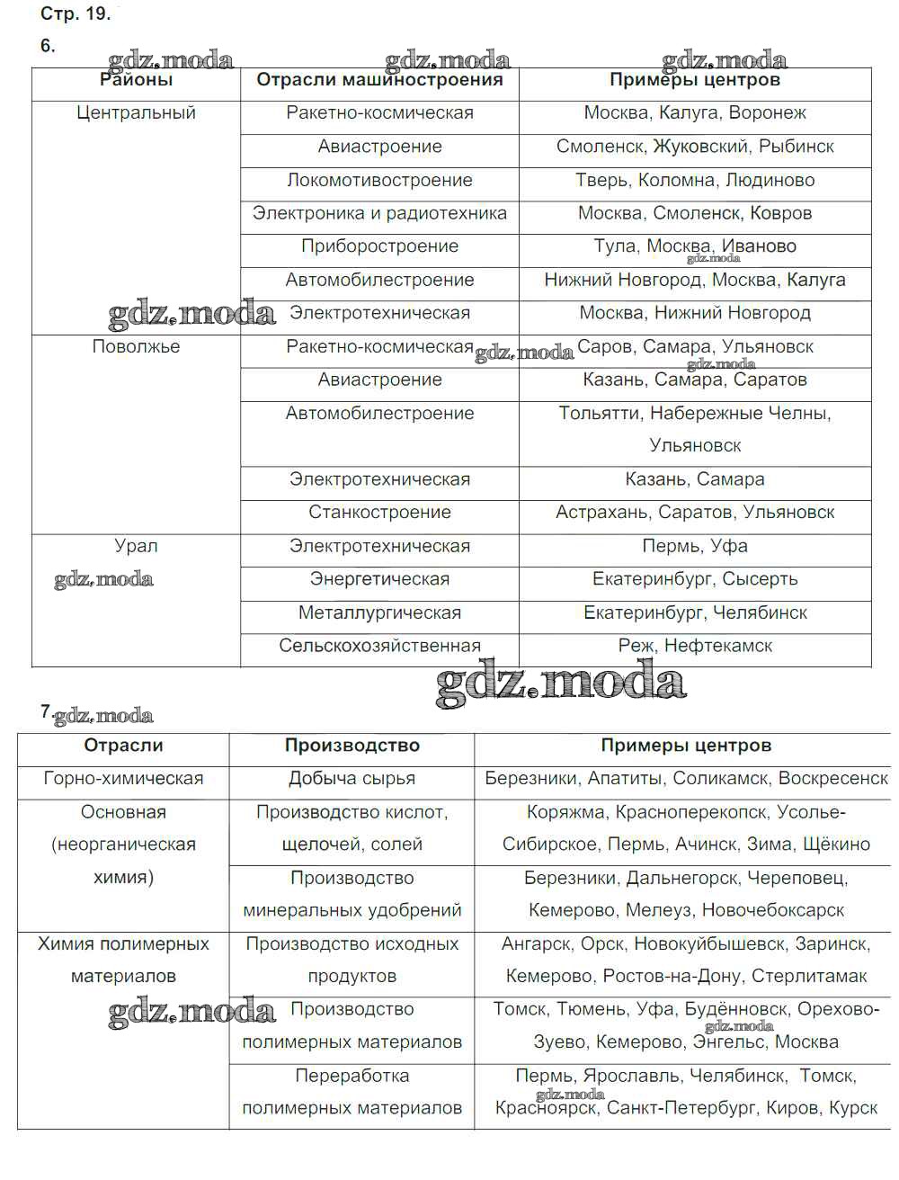 ГДЗ решение к заданию № стр.19 География России 9 класс тетрадь-тренажер Ходова Е.С. Просвещение 2016 ФГОС бесплатно на гдз.мода!