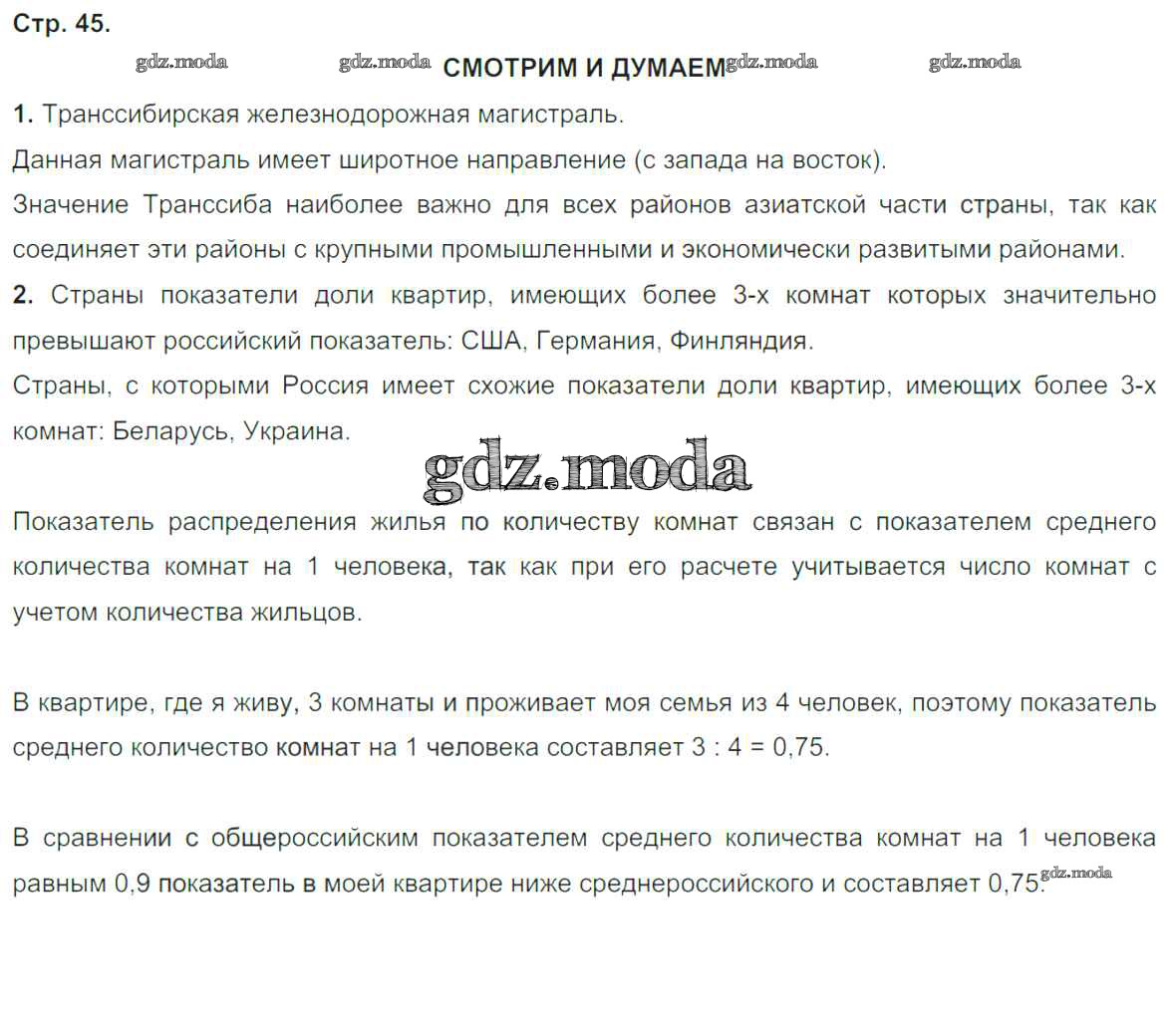 ГДЗ решение к заданию № стр.45 География России 9 класс тетрадь-тренажер Ходова Е.С. Просвещение 2016 ФГОС бесплатно на гдз.мода!