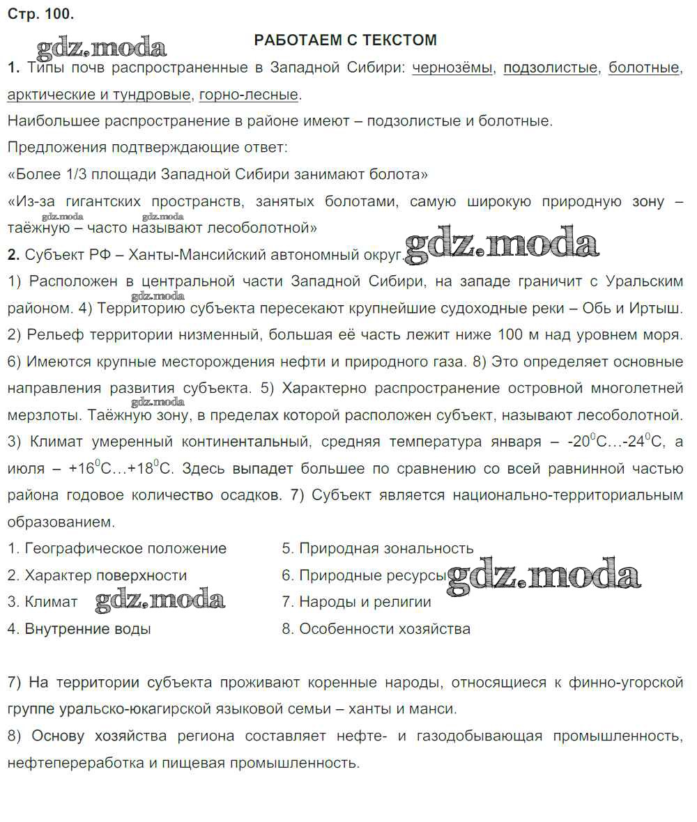 ГДЗ решение к заданию № стр.100 География России 9 класс тетрадь-тренажер Ходова Е.С. Просвещение 2016 ФГОС бесплатно на гдз.мода!