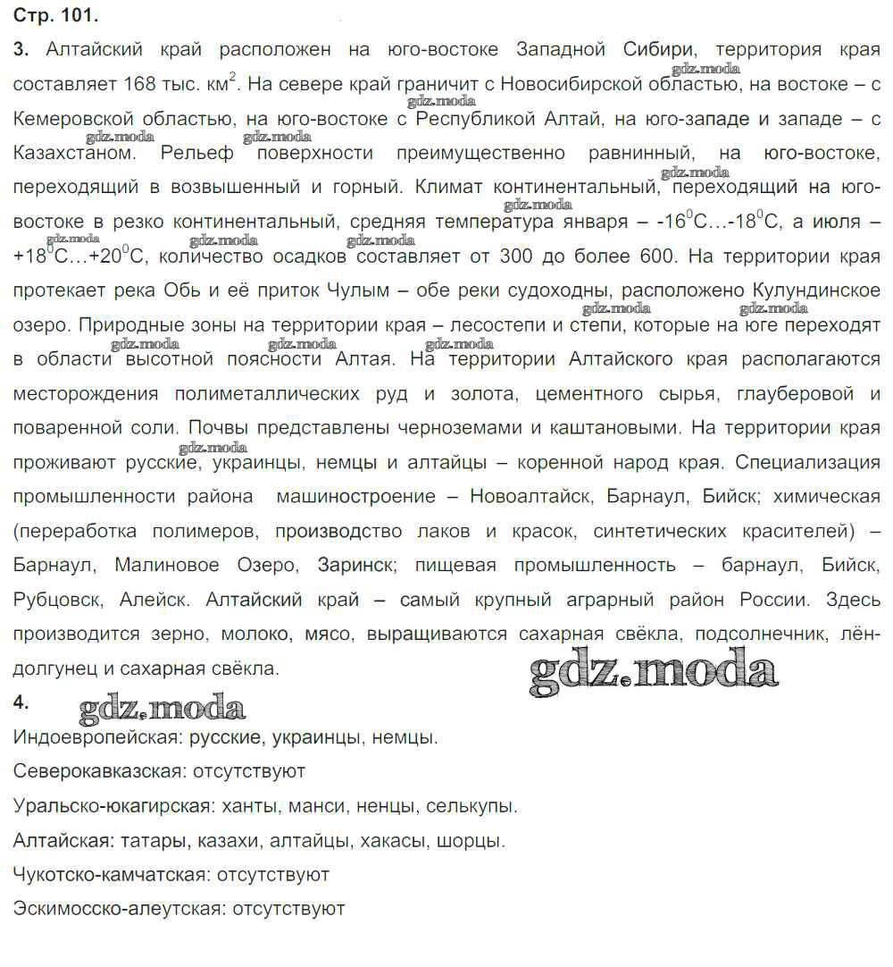 ГДЗ решение к заданию № стр.101 География России 9 класс тетрадь-тренажер Ходова Е.С. Просвещение 2016 ФГОС бесплатно на гдз.мода!