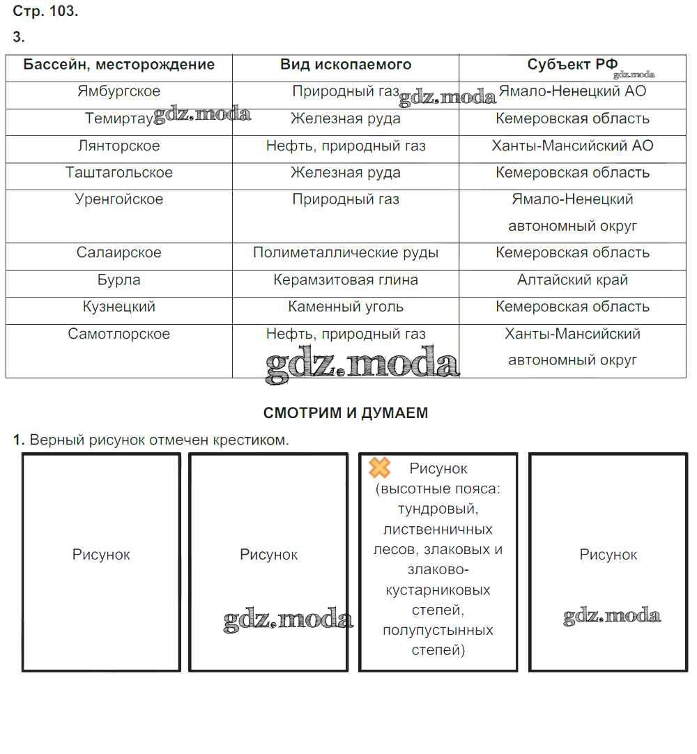 ГДЗ решение к заданию № стр.103 География России 9 класс тетрадь-тренажер Ходова Е.С. Просвещение 2016 ФГОС бесплатно на гдз.мода!