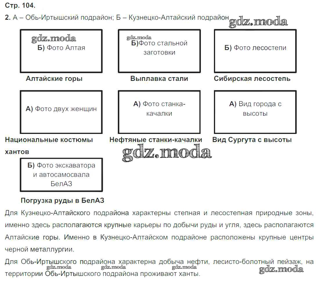 ГДЗ решение к заданию № стр.104 География России 9 класс тетрадь-тренажер Ходова Е.С. Просвещение 2016 ФГОС бесплатно на гдз.мода!