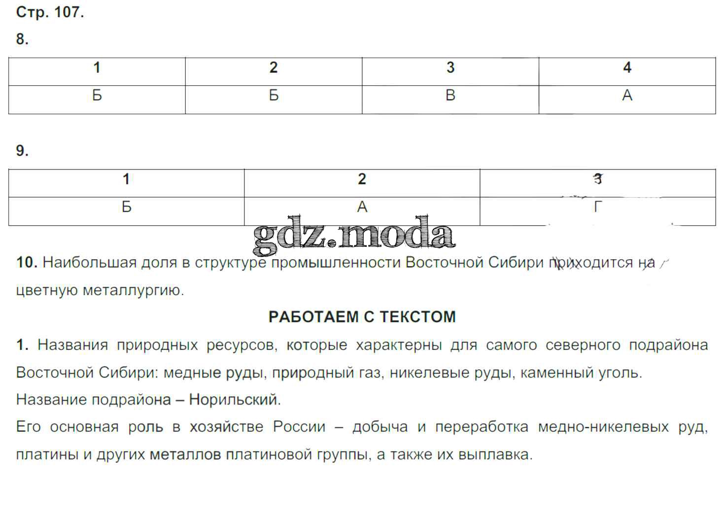 ГДЗ решение к заданию № стр.107 География России 9 класс тетрадь-тренажер Ходова Е.С. Просвещение 2016 ФГОС бесплатно на гдз.мода!