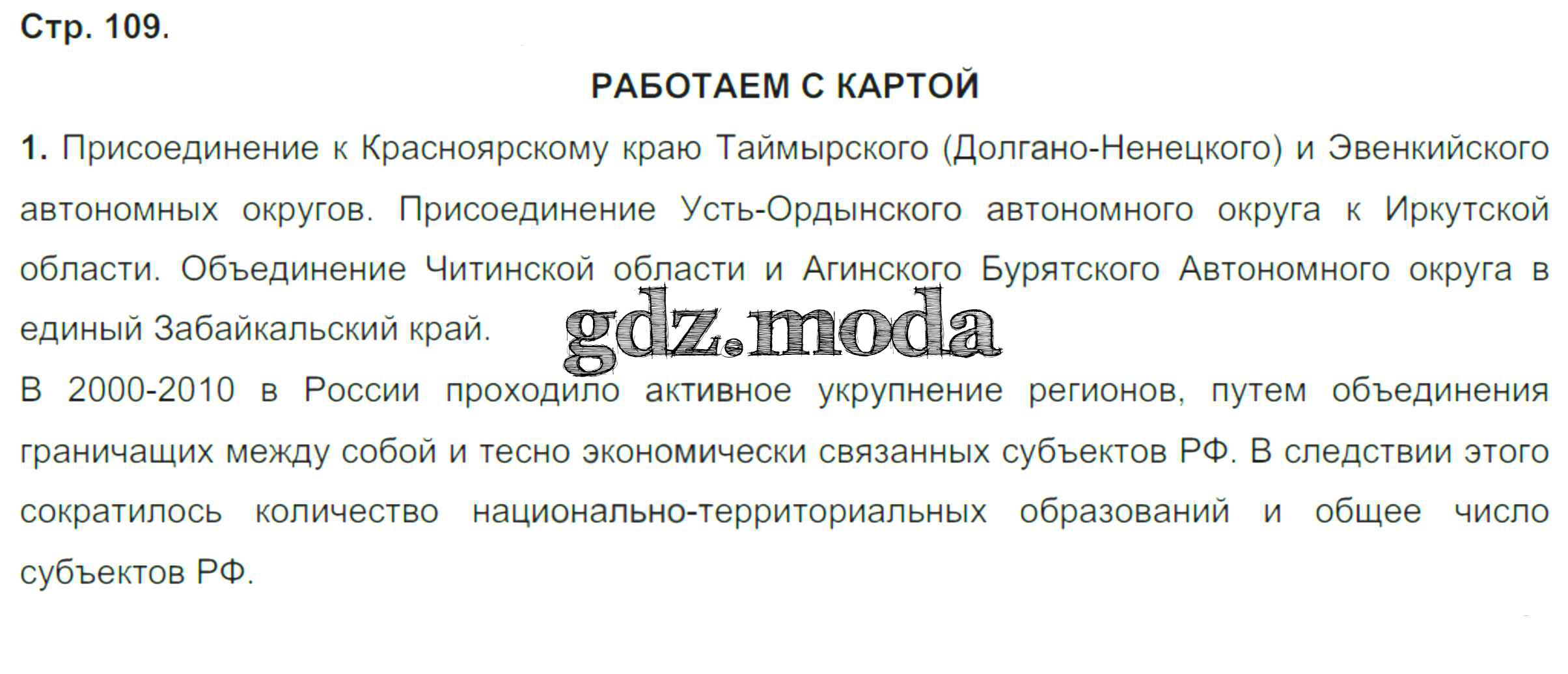 ГДЗ решение к заданию № стр.109 География России 9 класс тетрадь-тренажер Ходова Е.С. Просвещение 2016 ФГОС бесплатно на гдз.мода!