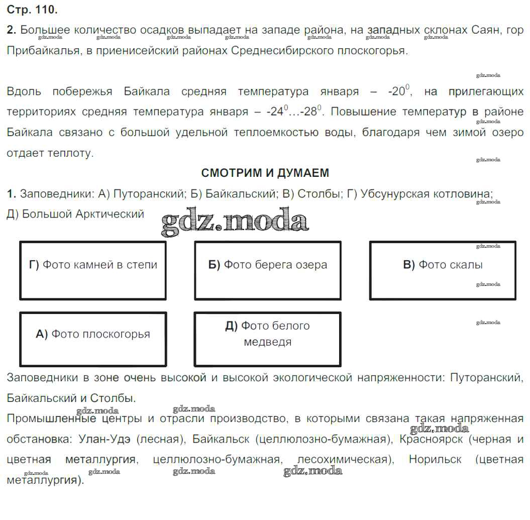 ГДЗ решение к заданию № стр.110 География России 9 класс тетрадь-тренажер Ходова Е.С. Просвещение 2016 ФГОС бесплатно на гдз.мода!