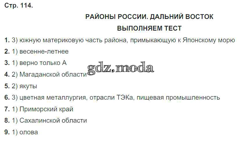 ГДЗ решение к заданию № стр.114 География России 9 класс тетрадь-тренажер Ходова Е.С. Просвещение 2016 ФГОС бесплатно на гдз.мода!