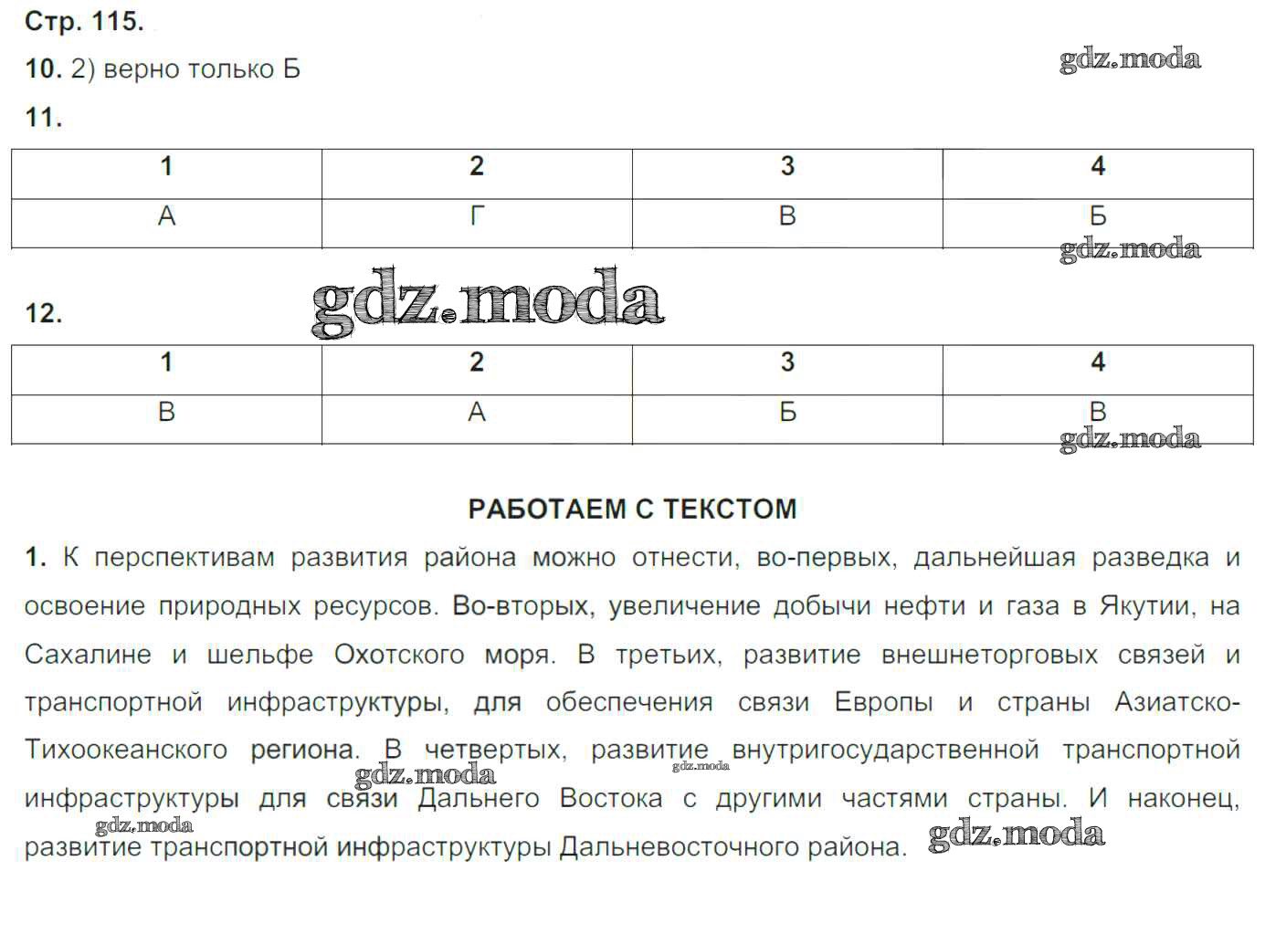 ГДЗ решение к заданию № стр.115 География России 9 класс тетрадь-тренажер Ходова Е.С. Просвещение 2016 ФГОС бесплатно на гдз.мода!