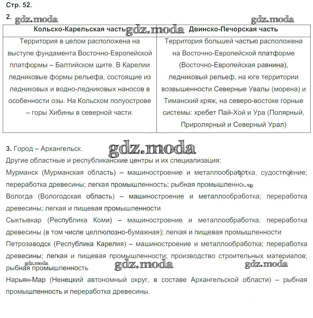 ГДЗ решение к заданию № стр.52 География России 9 класс тетрадь-тренажер Ходова Е.С. Просвещение 2016 ФГОС бесплатно на гдз.мода!