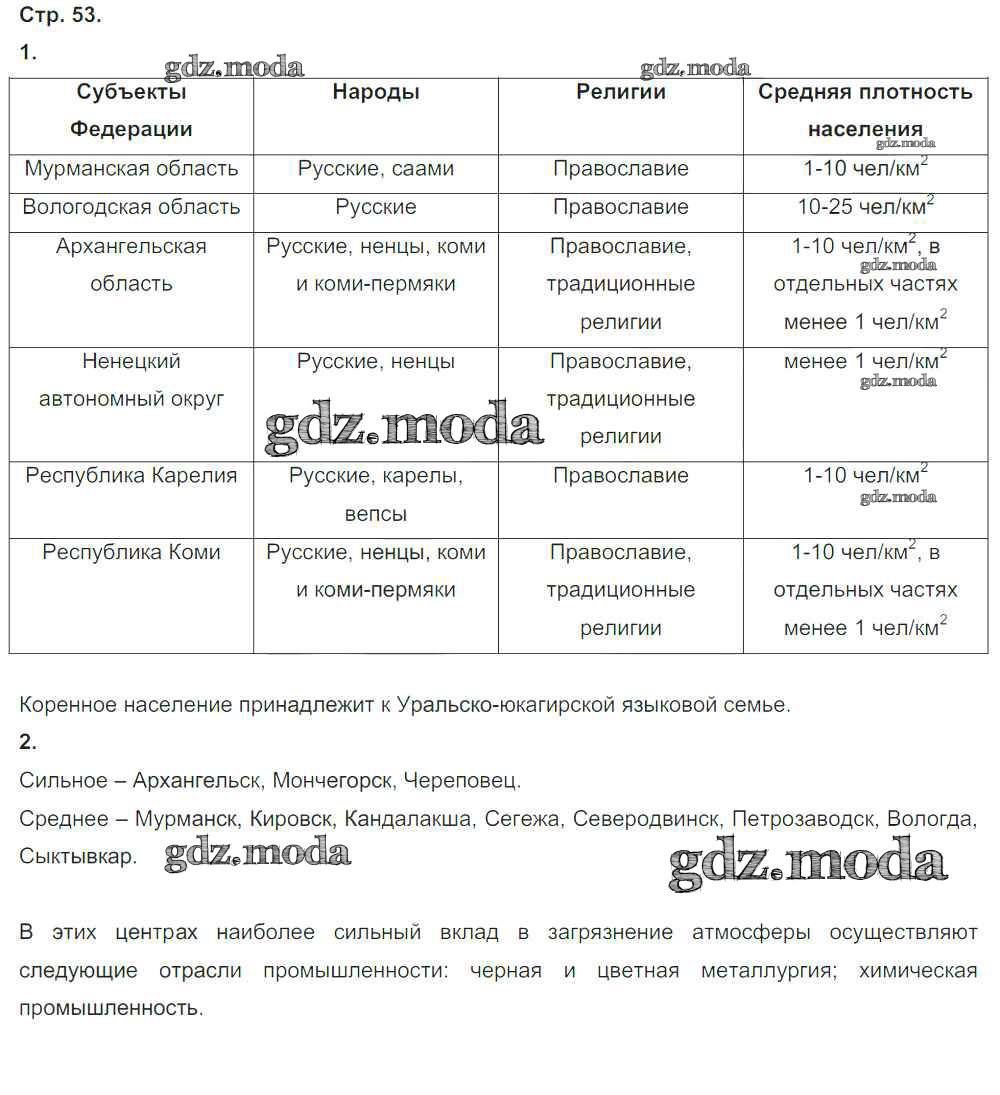 ГДЗ решение к заданию № стр.53 География России 9 класс тетрадь-тренажер Ходова Е.С. Просвещение 2016 ФГОС бесплатно на гдз.мода!