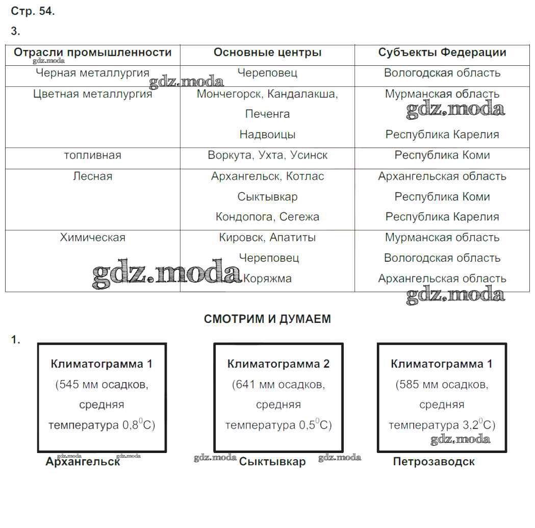 ГДЗ решение к заданию № стр.54 География России 9 класс тетрадь-тренажер Ходова Е.С. Просвещение 2016 ФГОС бесплатно на гдз.мода!