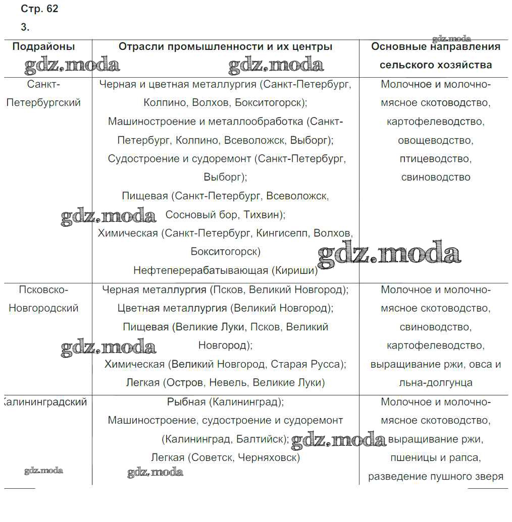 ГДЗ решение к заданию № стр.62 География России 9 класс тетрадь-тренажер Ходова Е.С. Просвещение 2016 ФГОС бесплатно на гдз.мода!