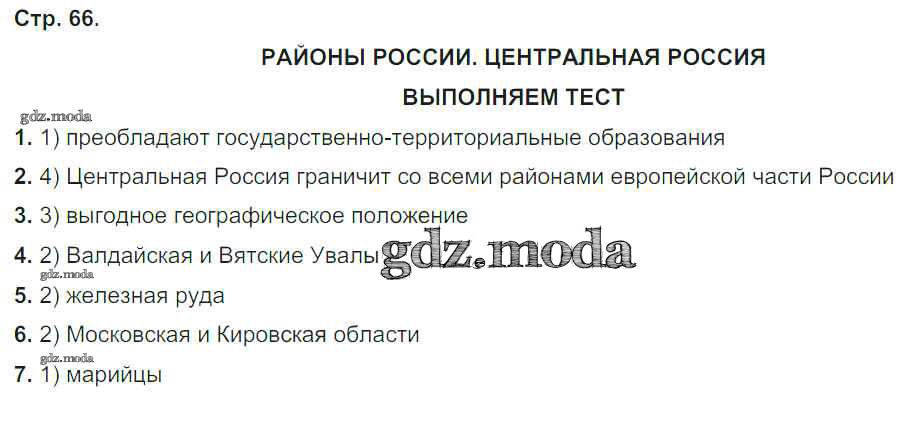 ГДЗ решение к заданию № стр.66 География России 9 класс тетрадь-тренажер Ходова Е.С. Просвещение 2016 ФГОС бесплатно на гдз.мода!
