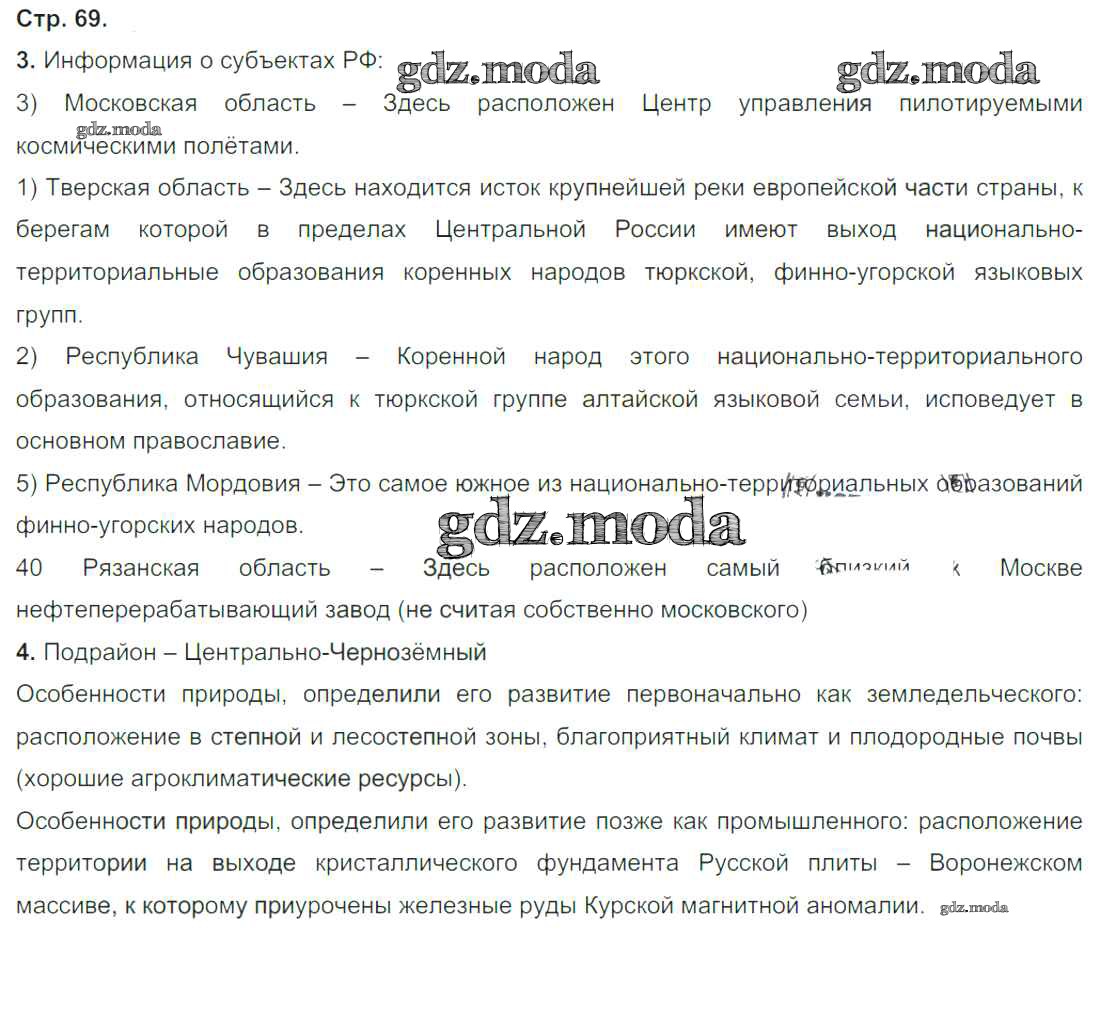 ГДЗ решение к заданию № стр.69 География России 9 класс тетрадь-тренажер Ходова Е.С. Просвещение 2016 ФГОС бесплатно на гдз.мода!