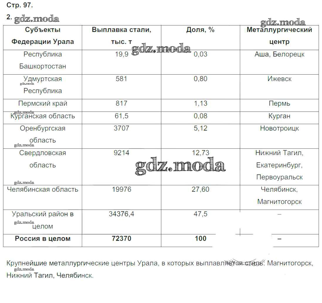 ГДЗ решение к заданию № стр.97 География России 9 класс тетрадь-тренажер Ходова Е.С. Просвещение 2016 ФГОС бесплатно на гдз.мода!