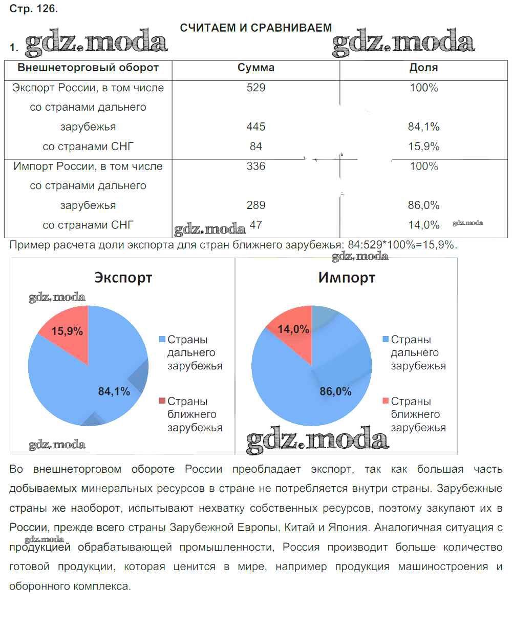 ГДЗ решение к заданию № стр.126 География России 9 класс тетрадь-тренажер Ходова Е.С. Просвещение 2016 ФГОС бесплатно на гдз.мода!