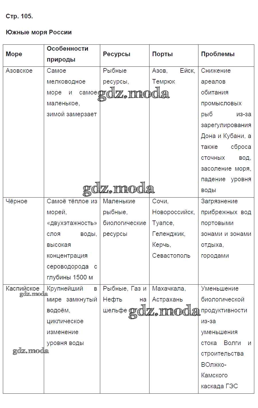 ГДЗ решение к заданию № 105 География России. Хозяйство и географические районы 9 класс рабочая тетрадь Ким Э.В. (к уч. Алексеева) Дрофа 2017 ФГОС бесплатно на гдз.мода!